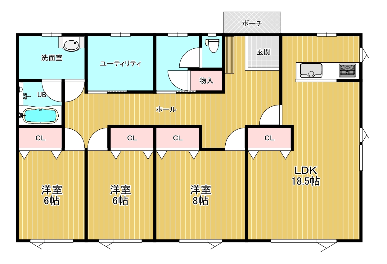 約33坪の3LDKは、すべての居室が南側に面しており、十勝の豊かな陽光が家全体に差し込みます。